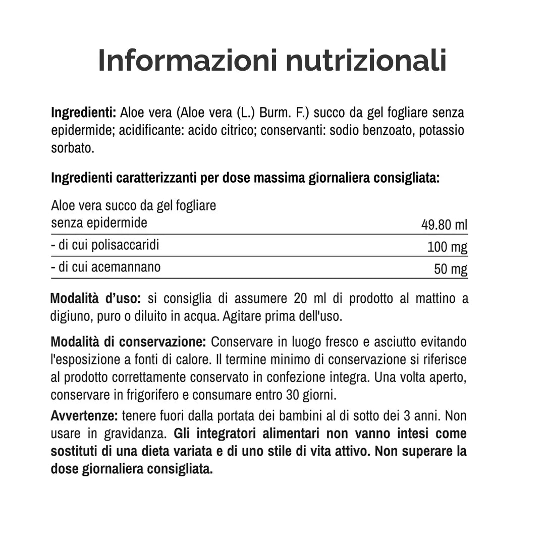 - Depurazione naturale e riequilibrio dell’organismo (Succo puro di Aloe Vera)